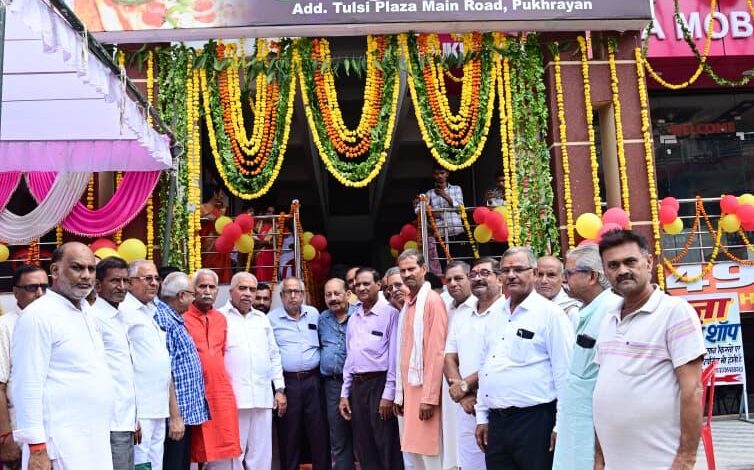 पुखरायां में कैबिनेट मंत्री राकेश सचान ने किया नवनिर्मित तुलसी प्लाजा का उद्घाटन; महानवमी पर गूंजे माता के भजन